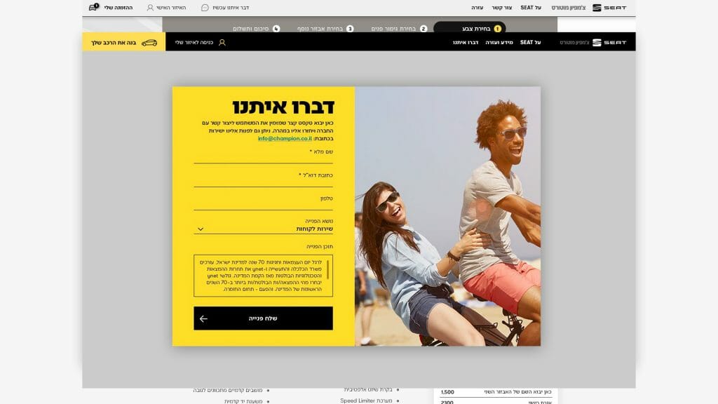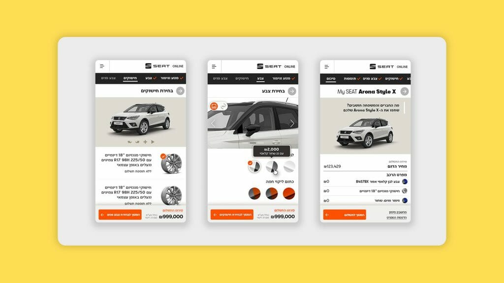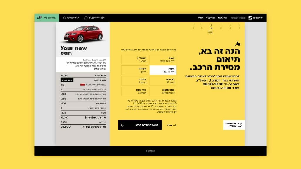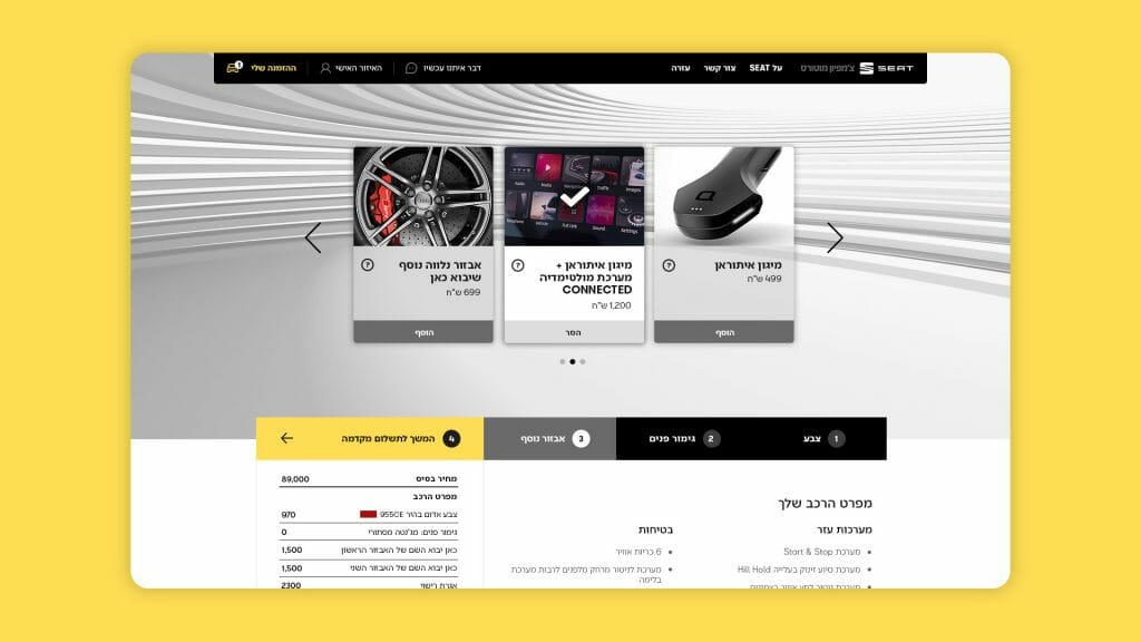 We drew a smart flow and an accessible and agile array for all the usual “dull״ paperwork. The process was shortened, the visual language was integrated into a wide media campaign and all that’s left was to click, receive the new car at home and hit the road.